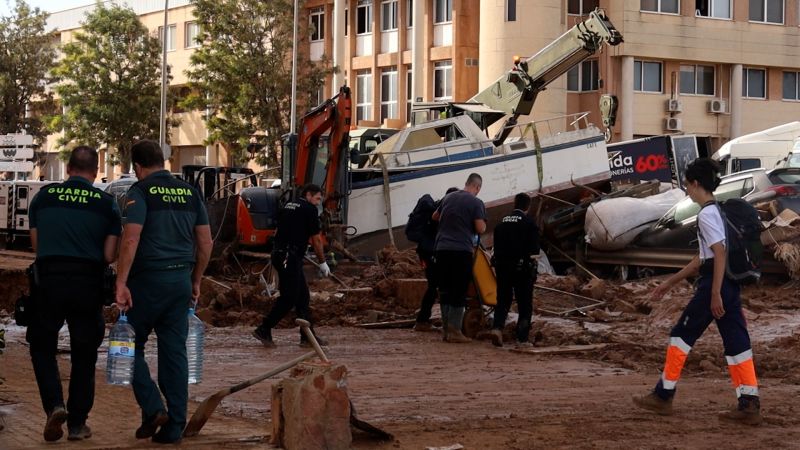 Mud still fills the streets in many areas, with the mayor of Valencia sharing images of community clean-up efforts on Friday. “Vehicles are being removed, the square is being cleaned and food and water are being collected,” Mayor María José Catalá said of La Torre.